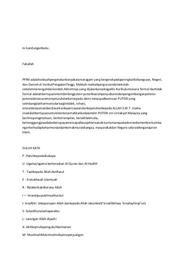 Biodata profile diri falsafah ppim matalamat. FALSAFAH PPIM Pergerakan Puteri Islam Malaysia adalah sebuah pergerakan berpakaian seragam yang bergerak pada peringkat kebangsaan negeri dan daerah di institut.